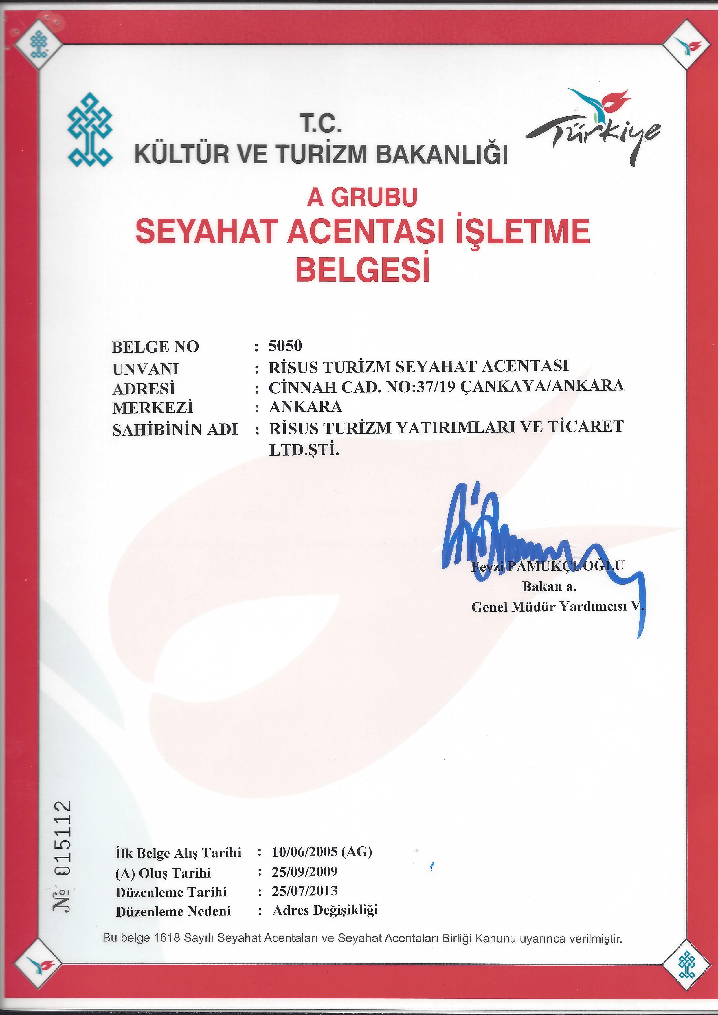Risustur TÜRSAB üyesi bir A Grubu acenta olarak hizmetinizdedir.